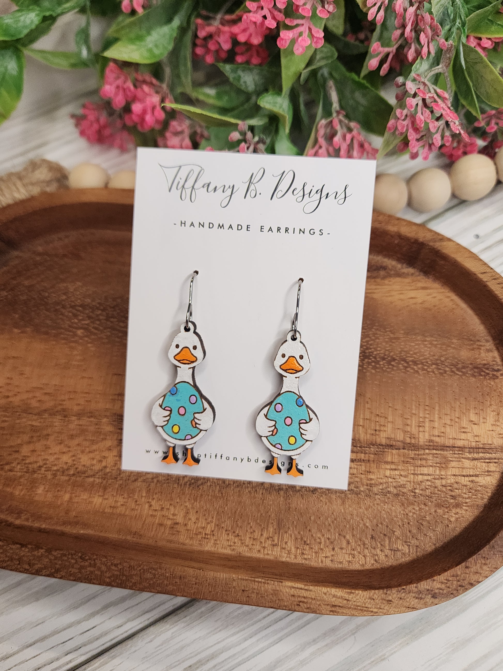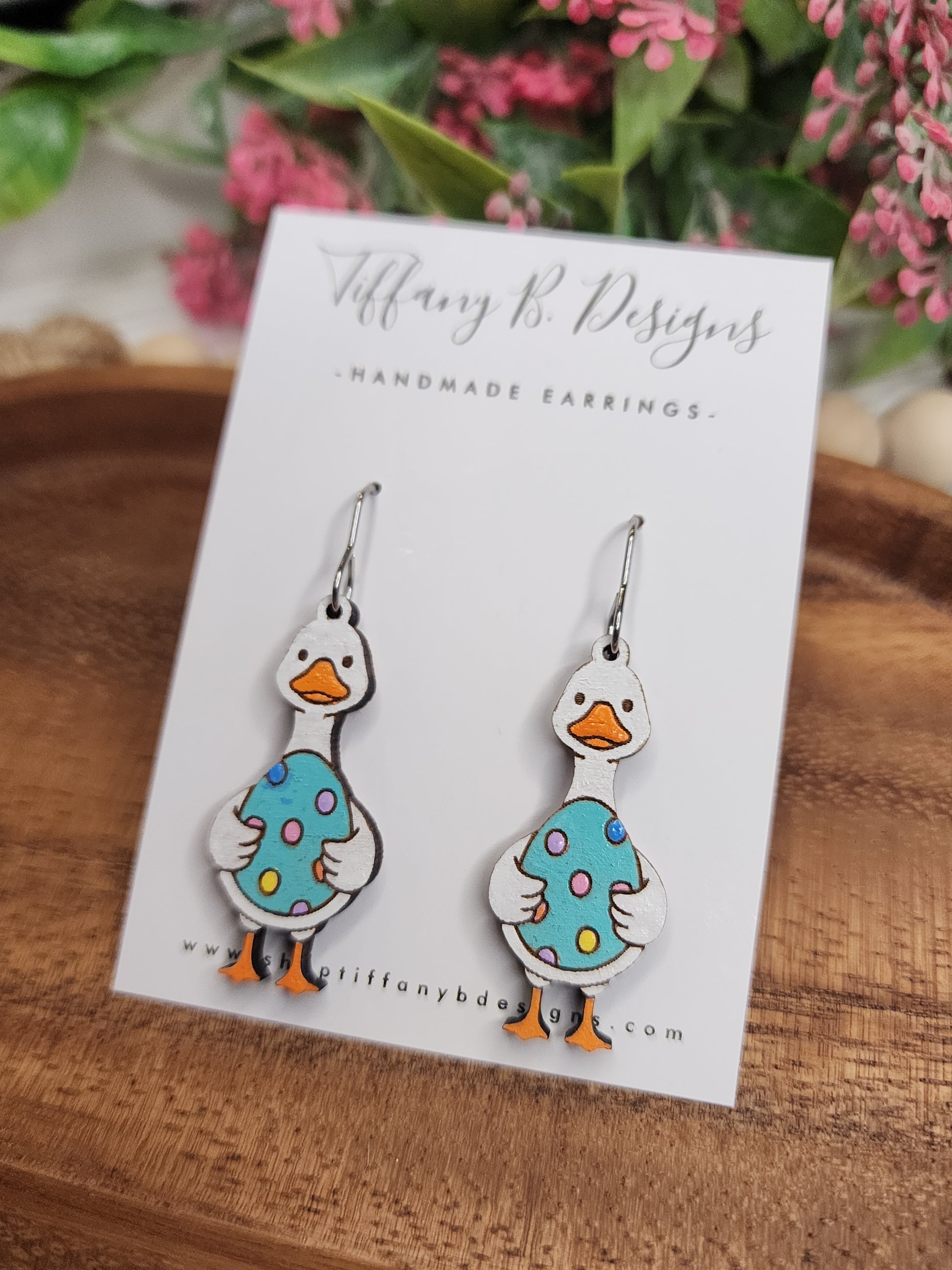 Hand-painted wood earrings on a Surgical Steel Earring hook