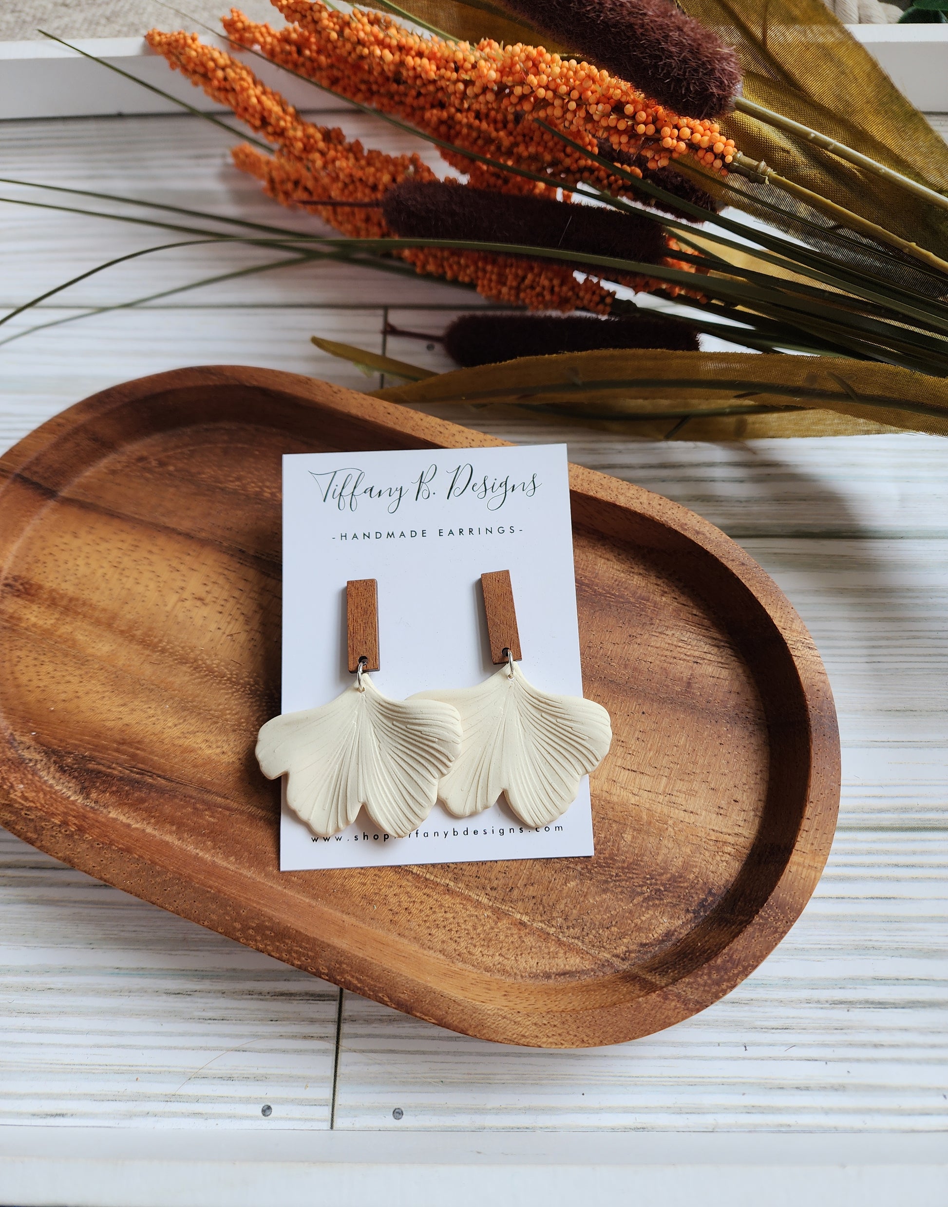 Ivory Petals on a Walnut Wood Rectangle Stud with a Stainless Steel Post.