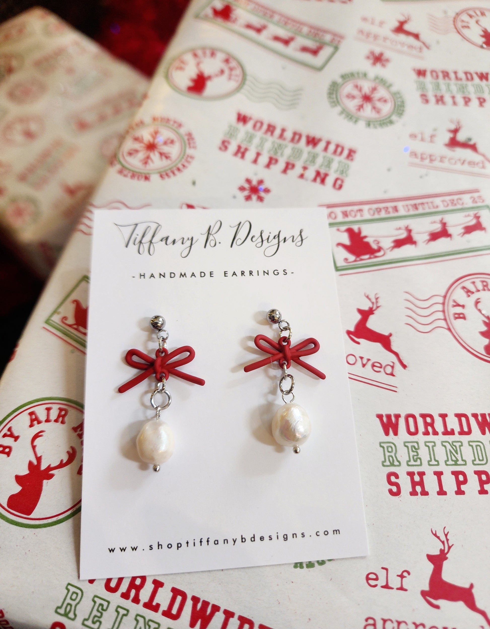 Petite Red Bows with a Pearl drop! If you love lightweight and dainty earrings, these are for you!